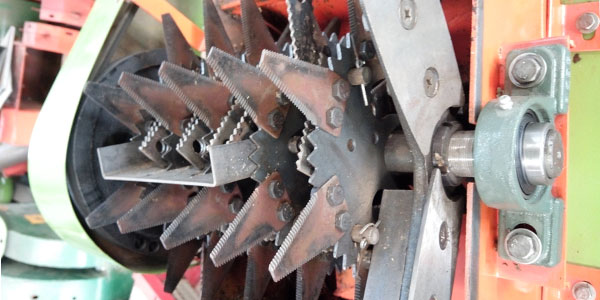使用UC系列,由高碳鋼精密加工而成,可自動調節平衡,使用維修方便。并且主機輪加配重輪,增加配重,慣性大提高穩定性省動力;刀片提高破碎率。